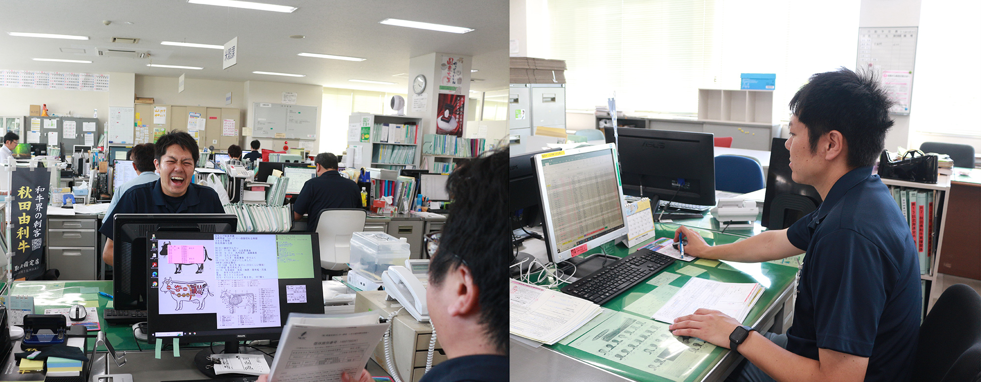 月に3回以上定例の農家巡回があり、子牛の登記や獣医さんとワクチン接種の巡回などを行います。業務で実際に和牛と触れ合うことが多いことや、農家さんとの会話から様々な情報を得られます。
