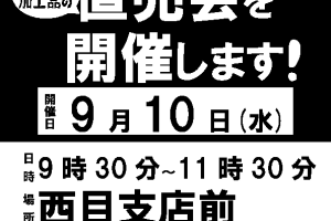 2025.09.08【9月10日9:30~】西目支店前で直売会を開催します!ぜひお越しください!新着情報 -
